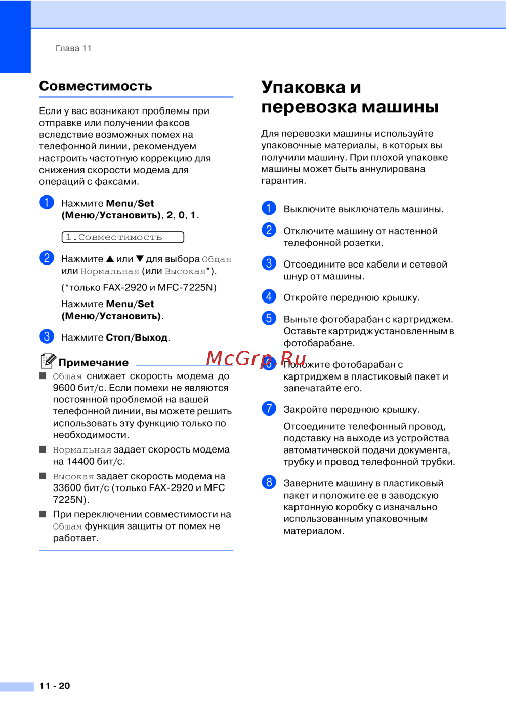 Brother Fax-2920R — настройка совместимости и упаковка для факсов и принтеров [101/147]
