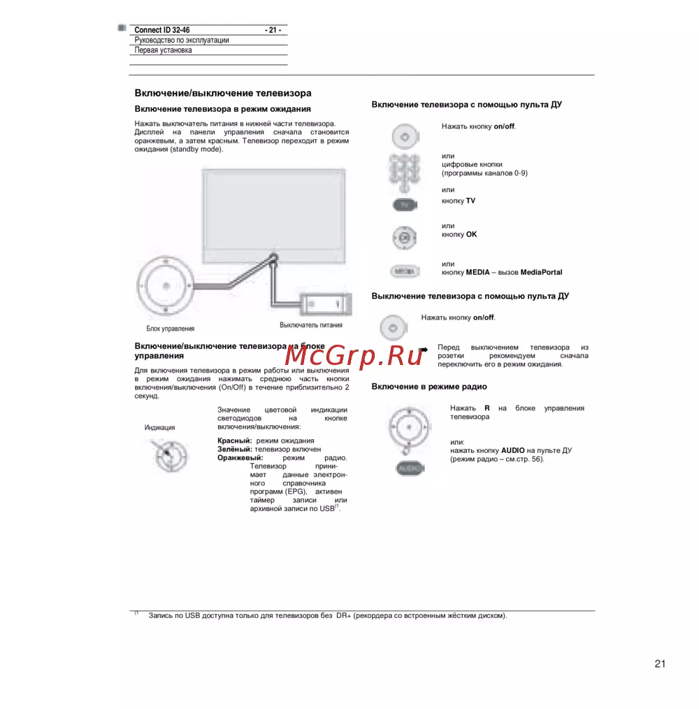 Запись по USB доступна только для телевизоров без DR+ (рекордера со встроенным жёстким диском).