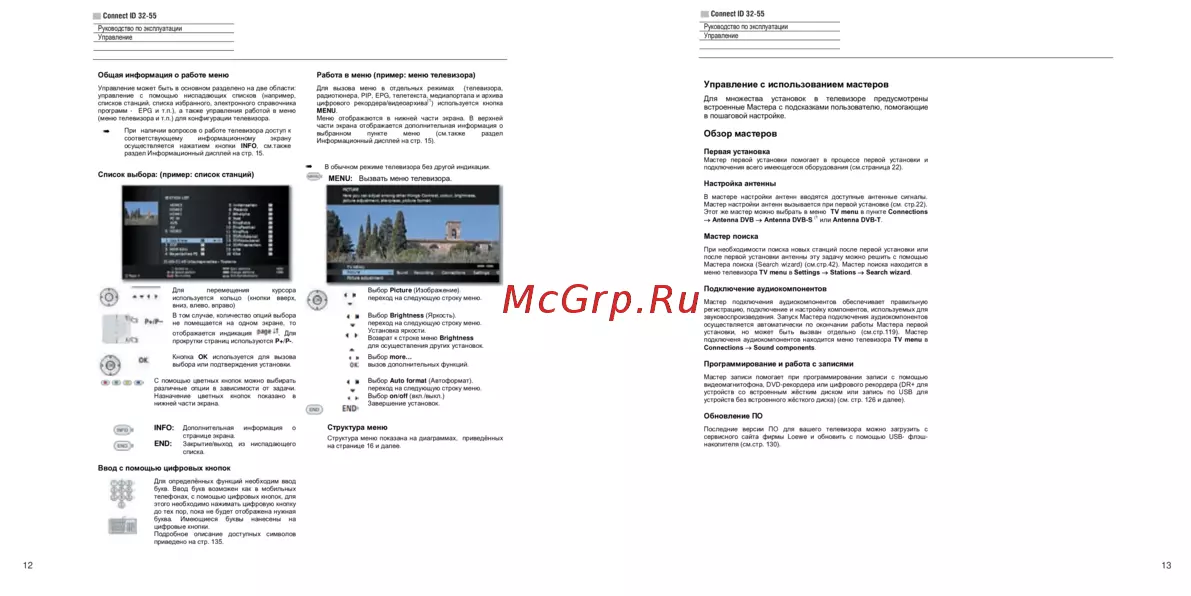 программ - EPG и т.п.), а также управления работой в меню