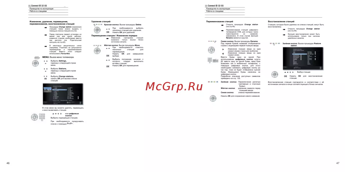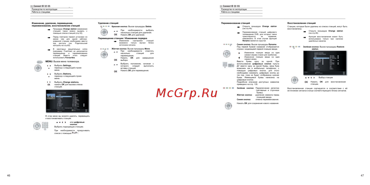помощью списка станций (стр.32).