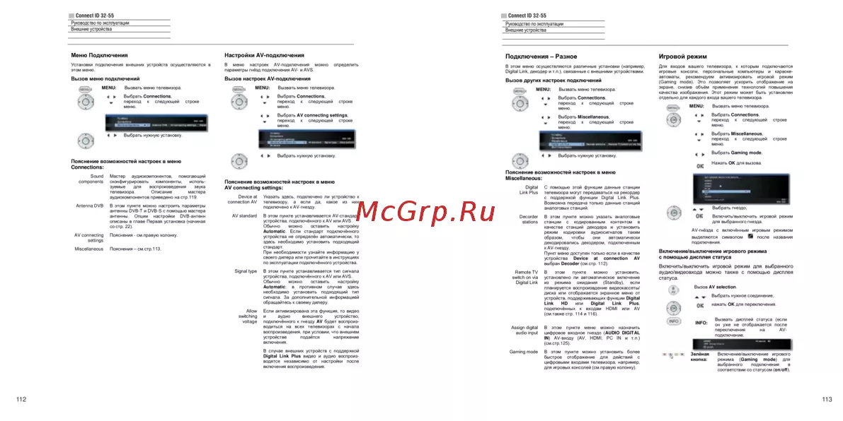 В меню настроек AV-подключения можно определить