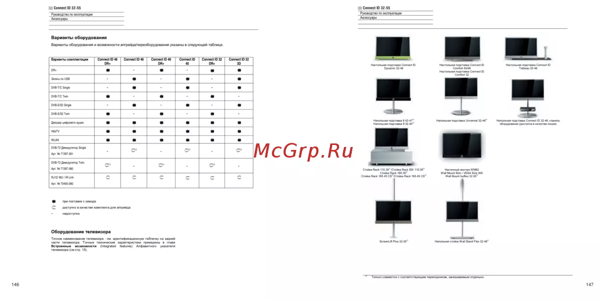 Варианты оборудования и возможности апгрейда/переоборудования указаны в следующей таблице.