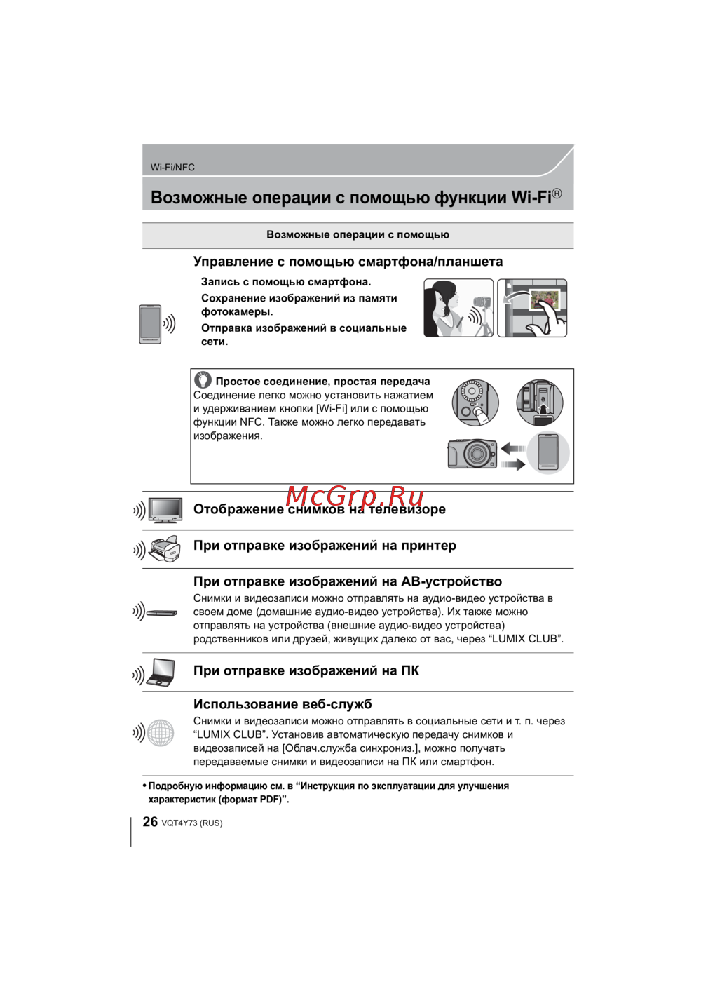 Узнайте, как управлять фотокамерой с помощью Wi-Fi и NFC. Запись, передача изображений и отправка в социальные сети стали проще и удобнее.