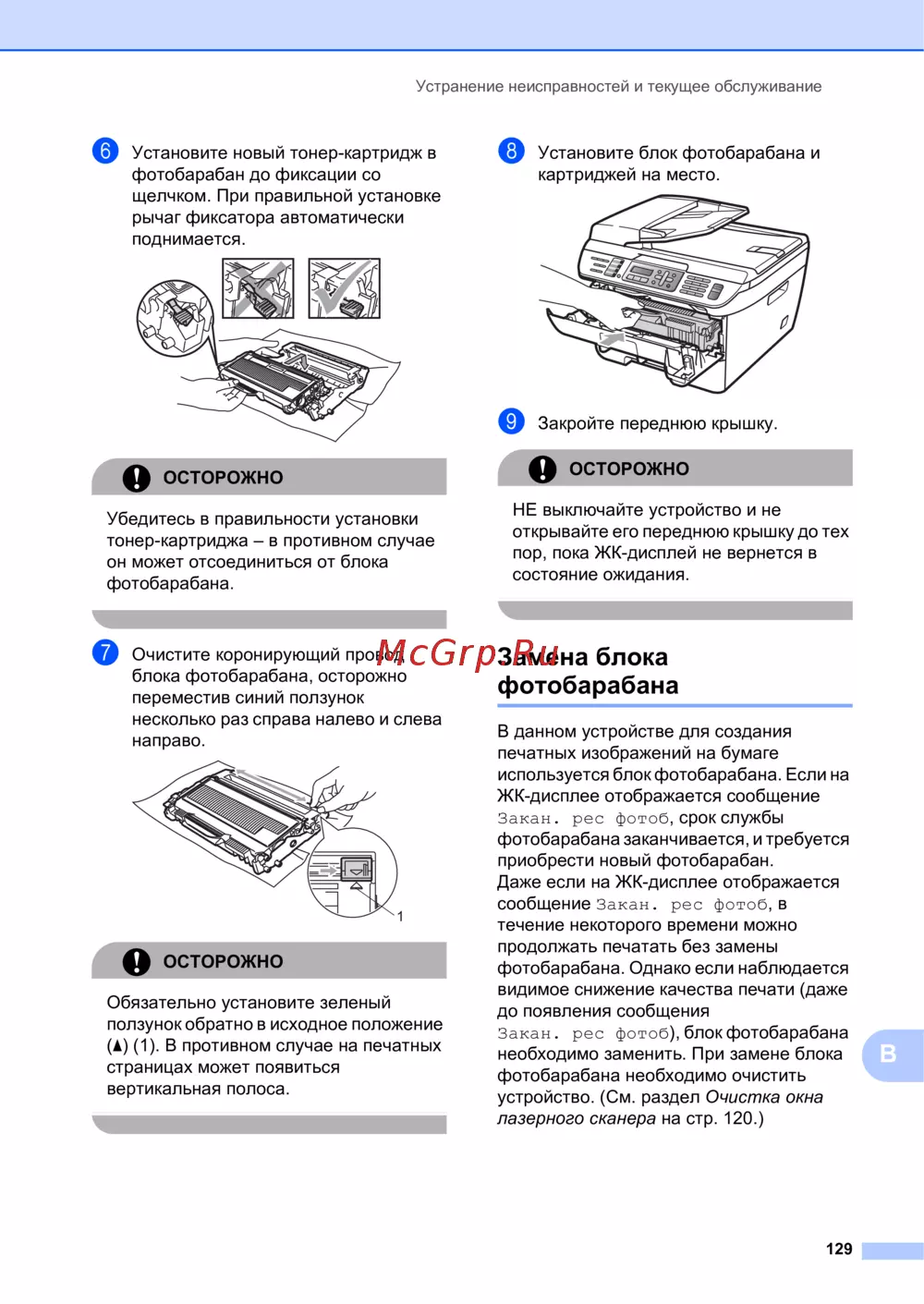 Научитесь правильно устанавливать тонер-картриджи и блоки фотобарабана. Узнайте, как избежать проблем с качеством печати и поддерживать устройство в рабочем состоянии.
