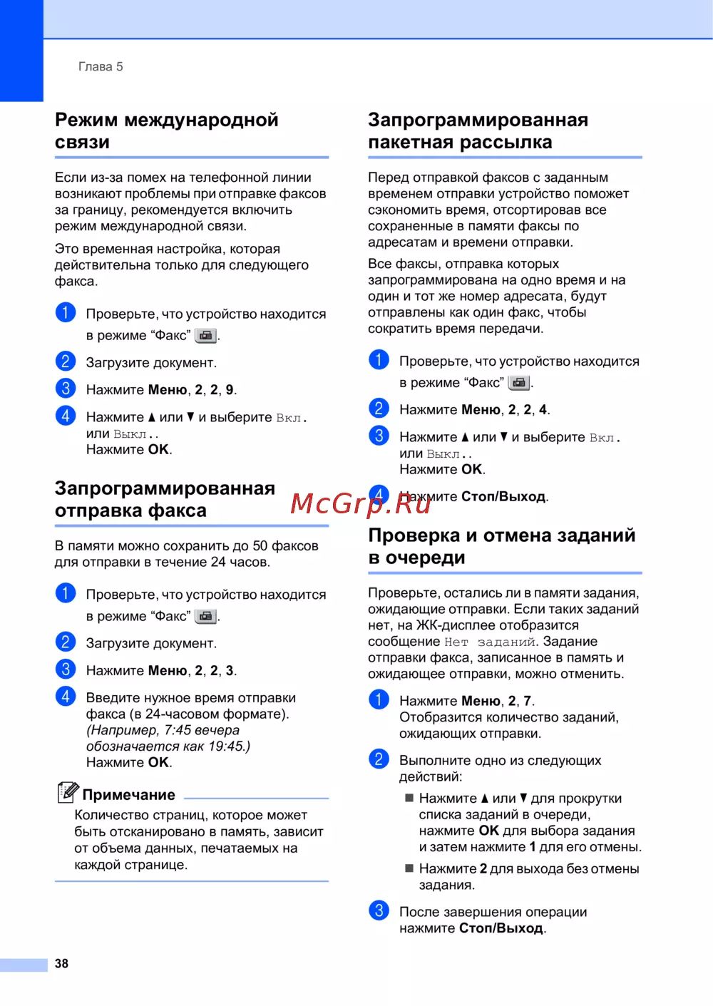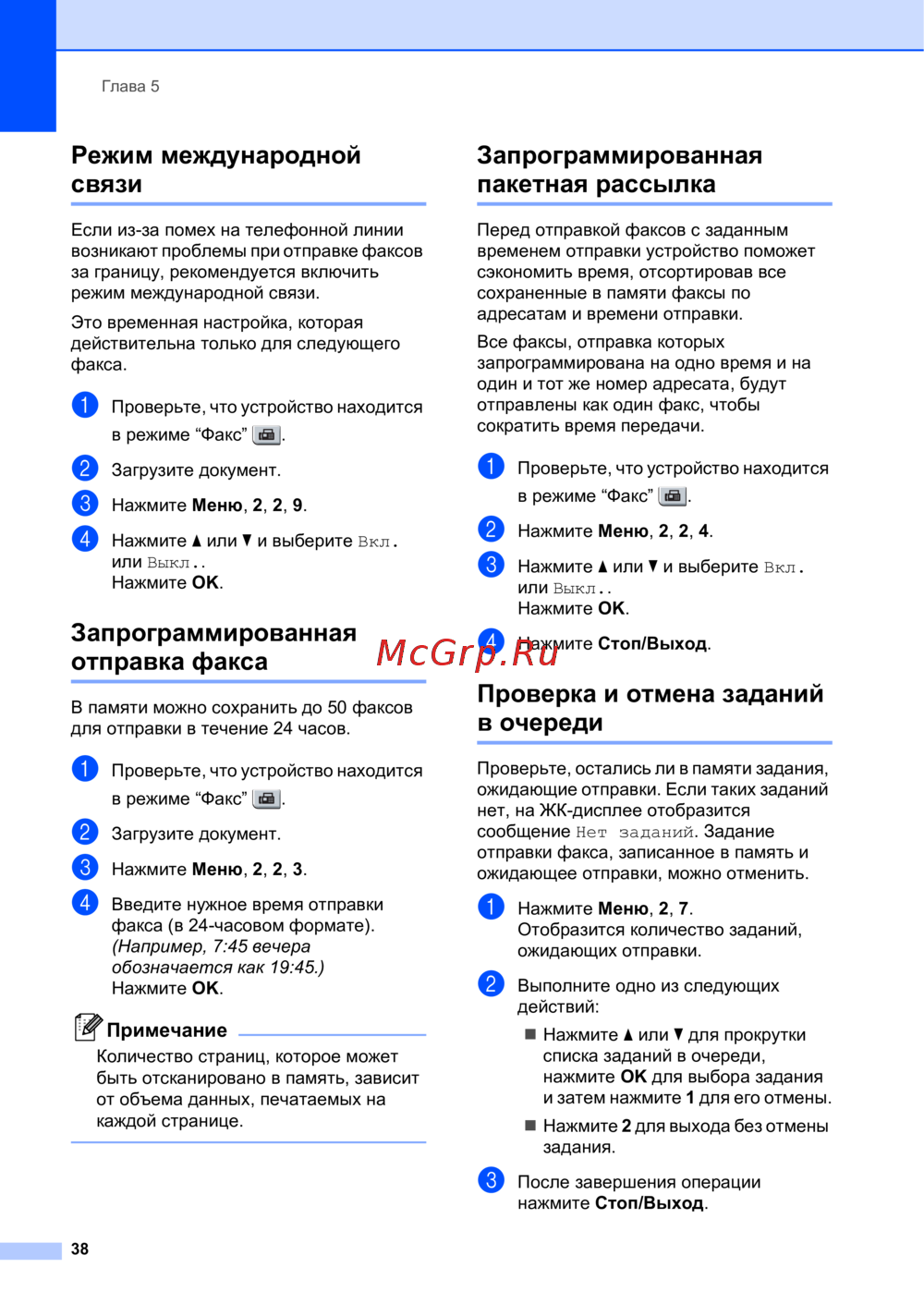Brother MFC-7840WR — настройка режима международной связи и отправка факсов [48/187]