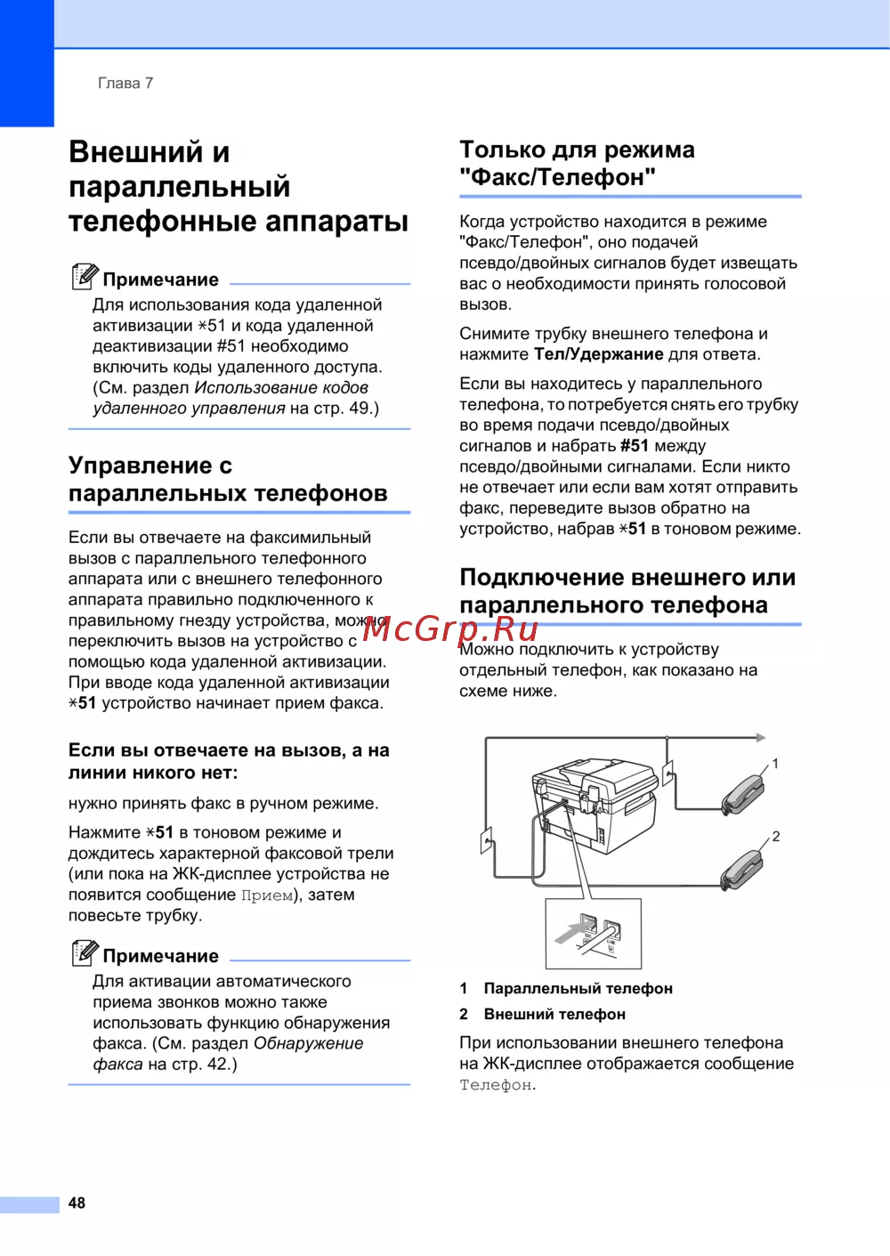 Brother MFC-7840WR — управление факсами с параллельных и внешних телефонов [58/187]