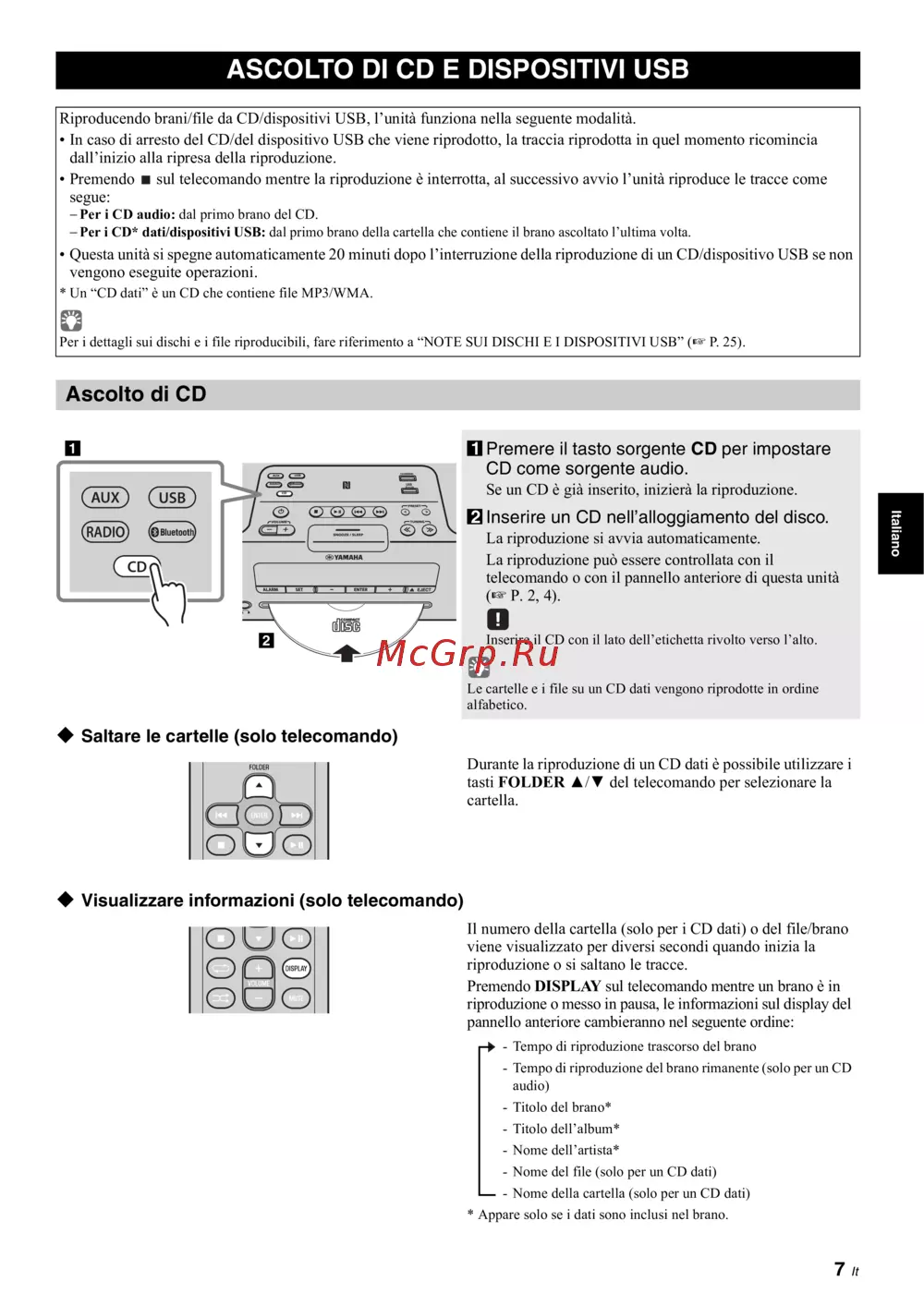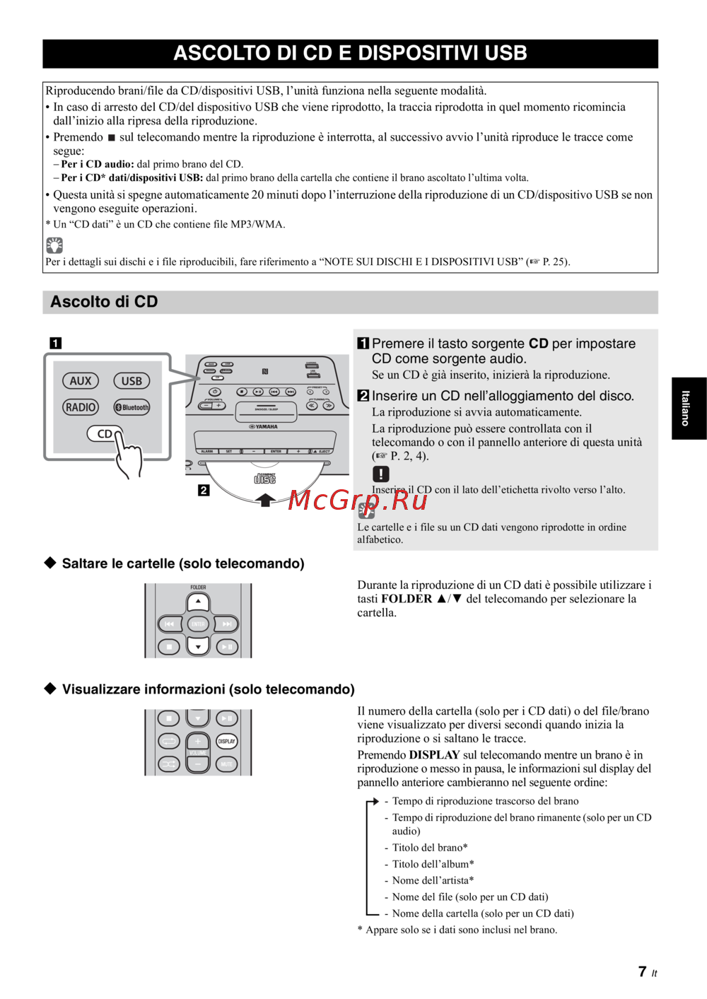 Yamaha TSX-B235 Pure White — guida all'ascolto di CD e dispositivi USB con telecomando [121/227]