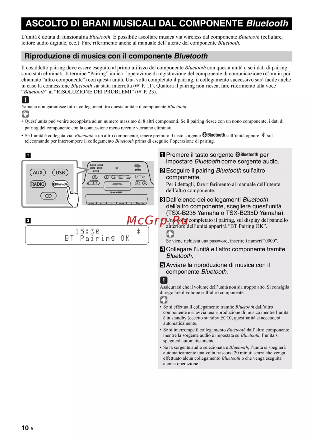 Yamaha non garantisce tutti i collegamenti tra questa unità e il componente Bluetooth.