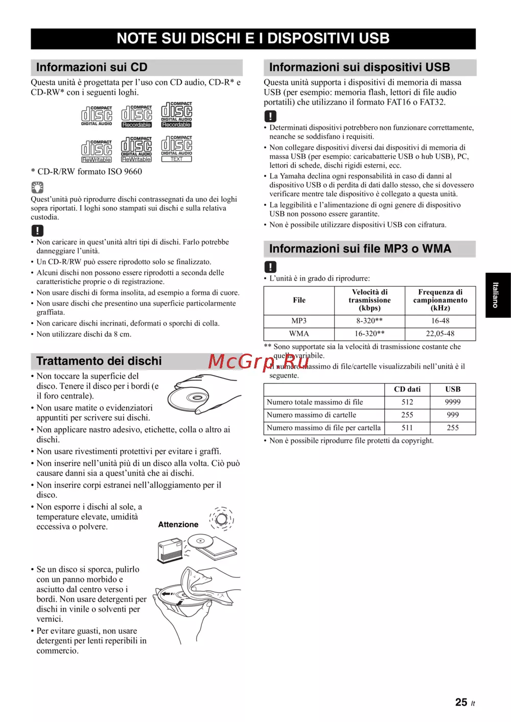 Yamaha TSX-B235 Pure White — guida all'uso di unità CD e dispositivi USB per la riproduzione audio [139/227]