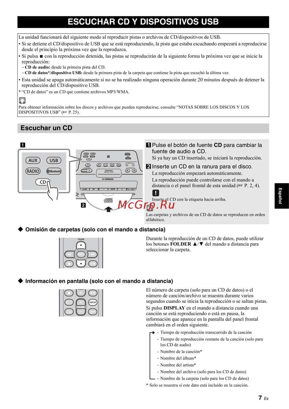 Yamaha TSX-B235 Pure White — guía para reproducir CD y dispositivos USB con mando a distancia [149/227]