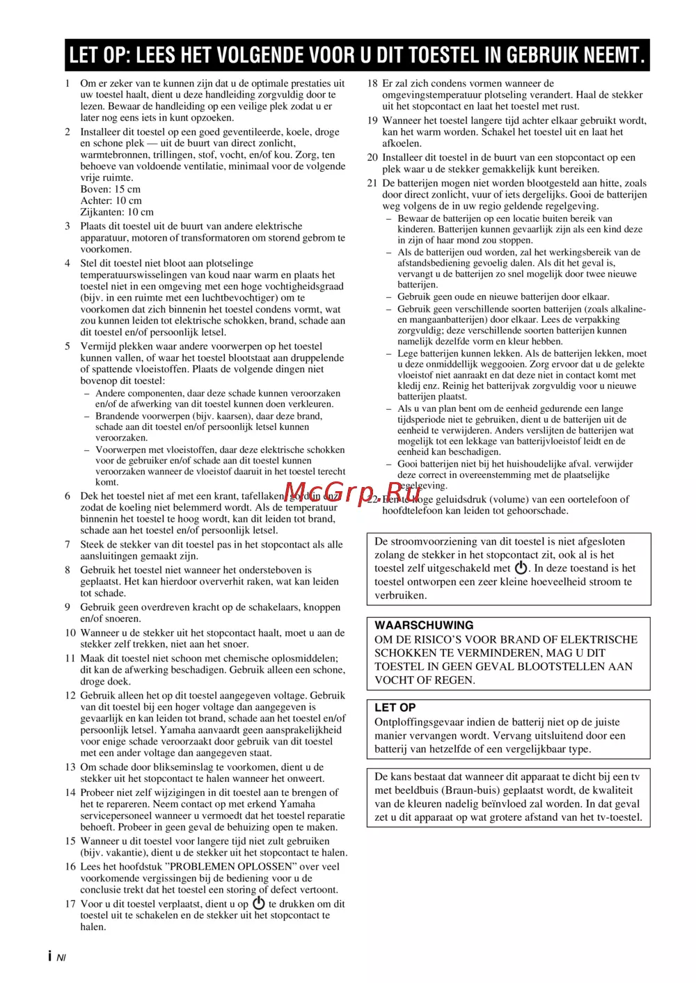 ![Yamaha TSX-B235 Pure White [170/227] Waarschuwing om de risico s voor brand of elektrische schokken te verminderen mag u dit toestel in geen geval blootstellen aan vocht of regen](/views2/1272314/page170/bgaa.png)