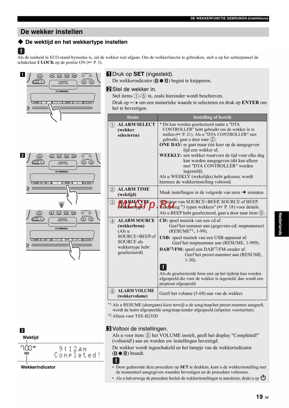 Yamaha TSX-B235 Pure White [189/227] De wekker instellen
