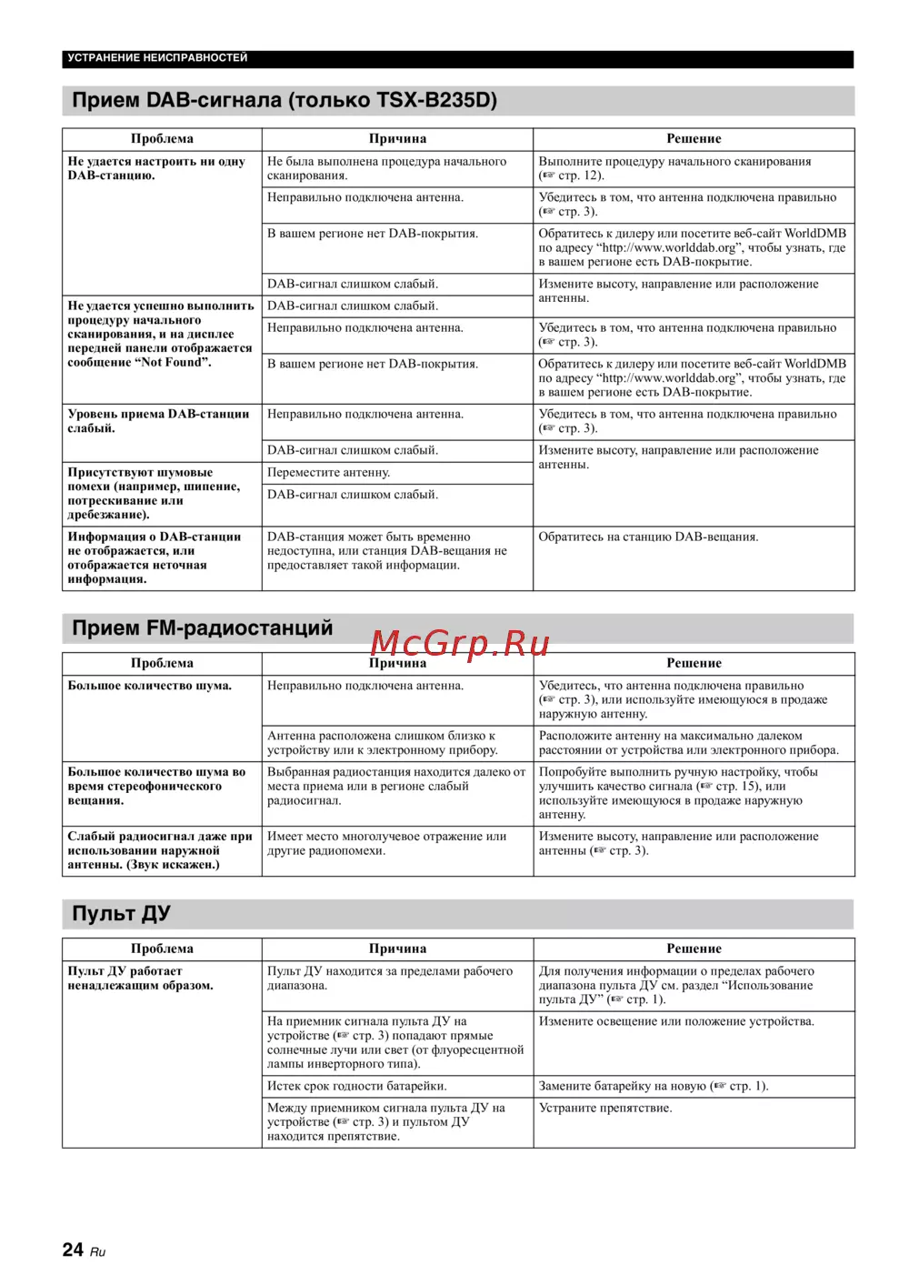 Yamaha TSX-B235 Pure White — устранение неисправностей DAB и FM радиоприемников [222/227]