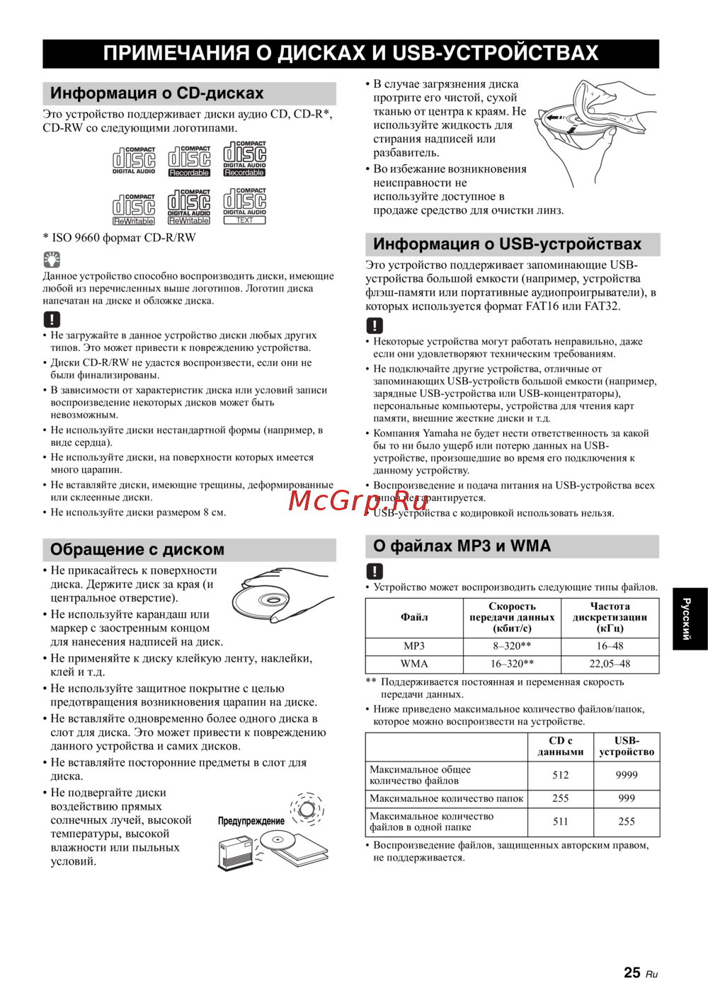 Узнайте, как правильно использовать аудиоустройство с дисками CD и USB. Следуйте рекомендациям по загрузке дисков и подключению USB-устройств для предотвращения повреждений.