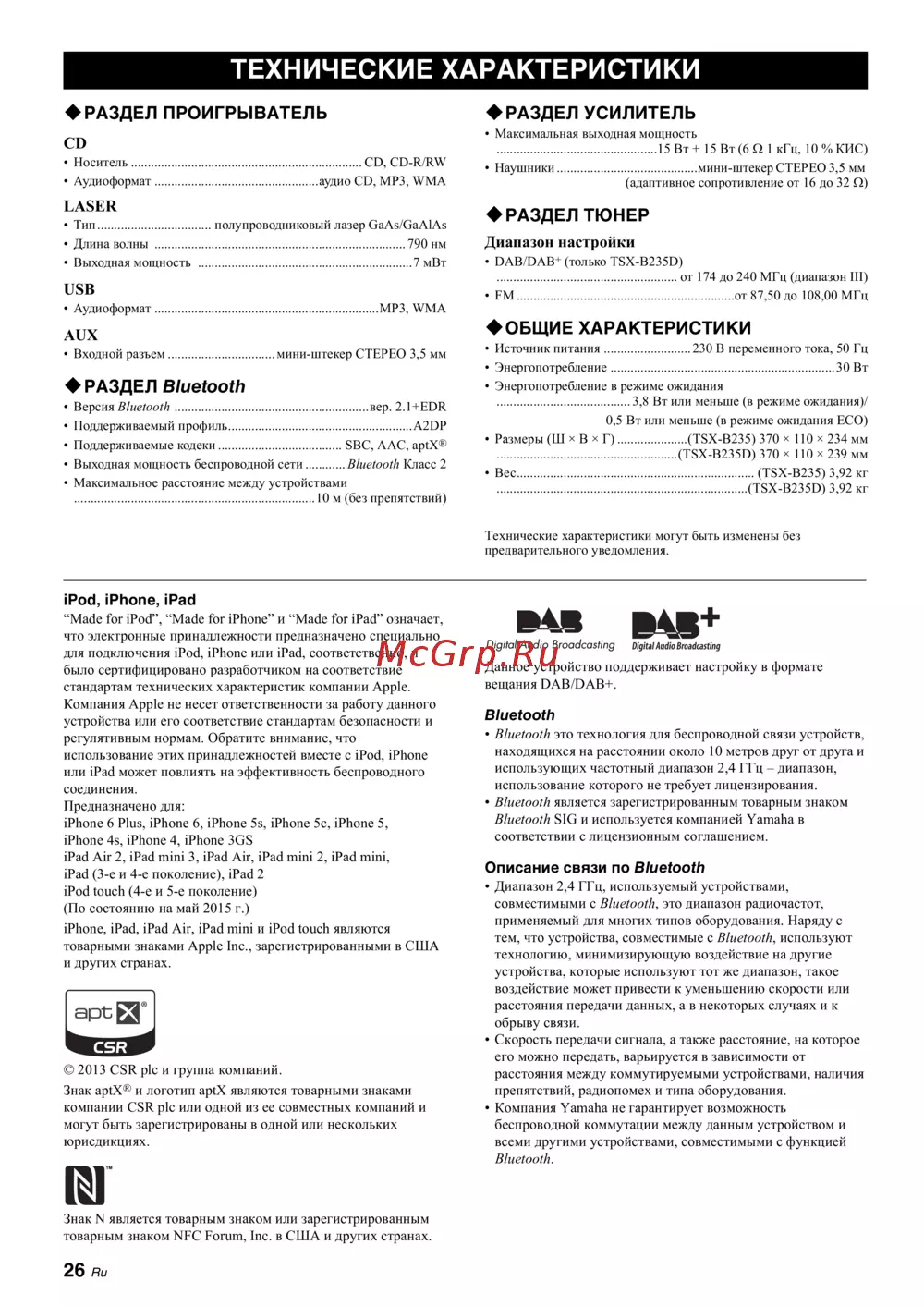 Yamaha MCR-B043 RedИнструкция по эксплуатации -