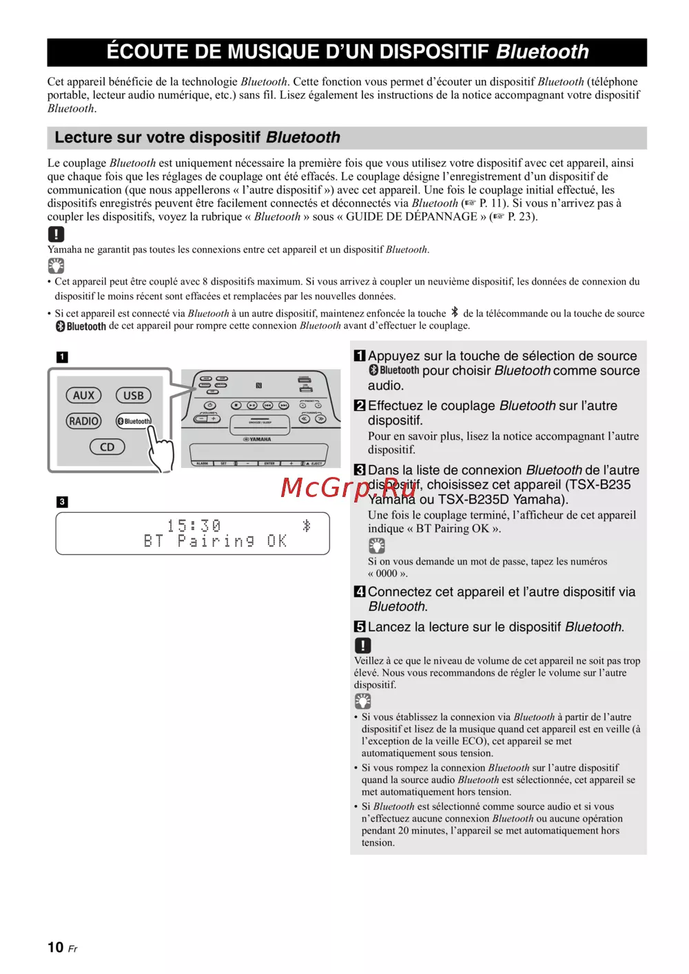 Yamaha ne garantit pas toutes les connexions entre cet appareil et un dispositif Bluetooth.
