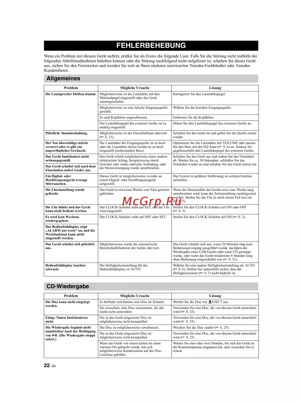 Yamaha TSX-B235 Pure White [80/227] Fehlerbehebung