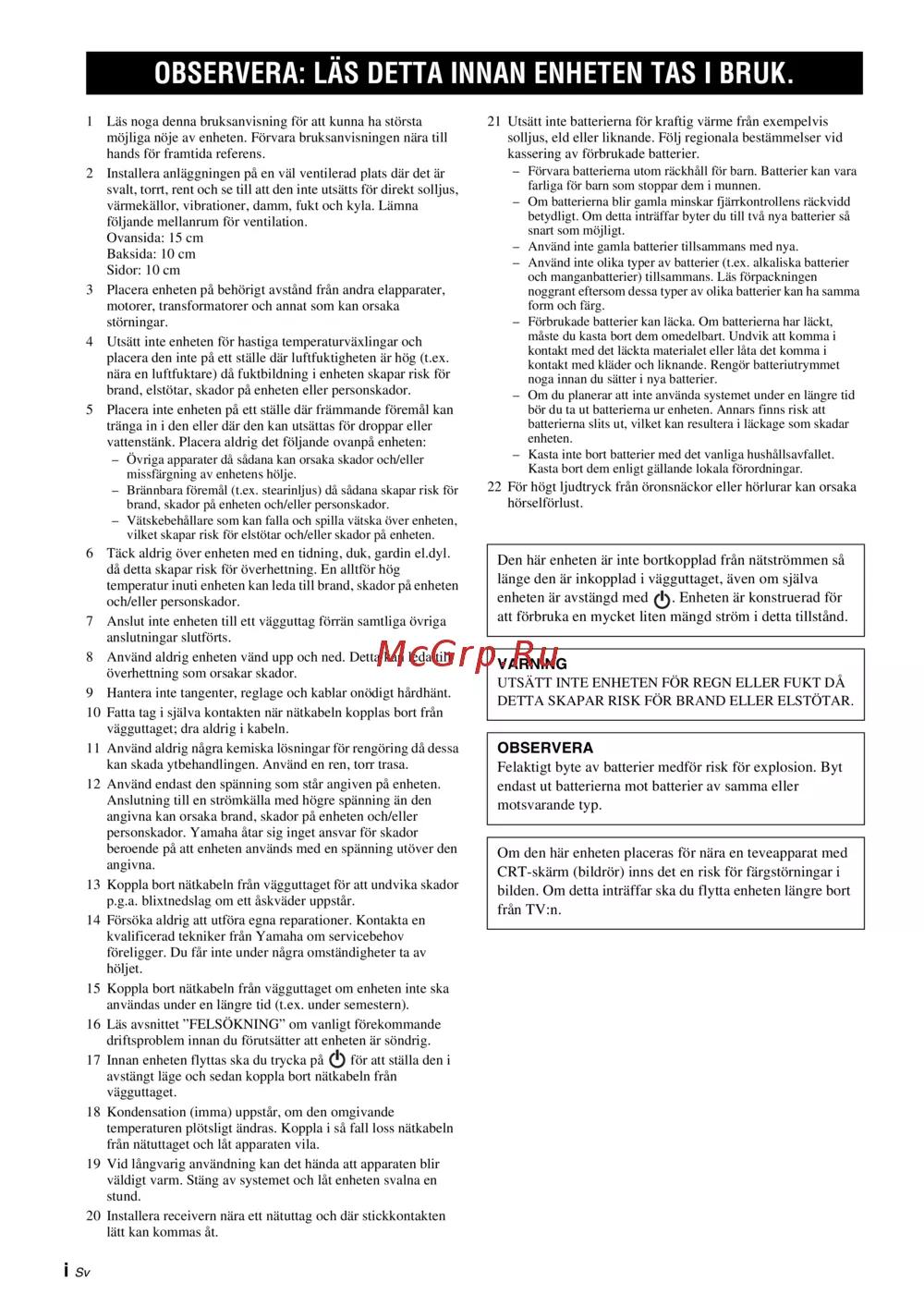 OBSERVERA: LÄS DETTA INNAN ENHETEN TAS I BRUK.