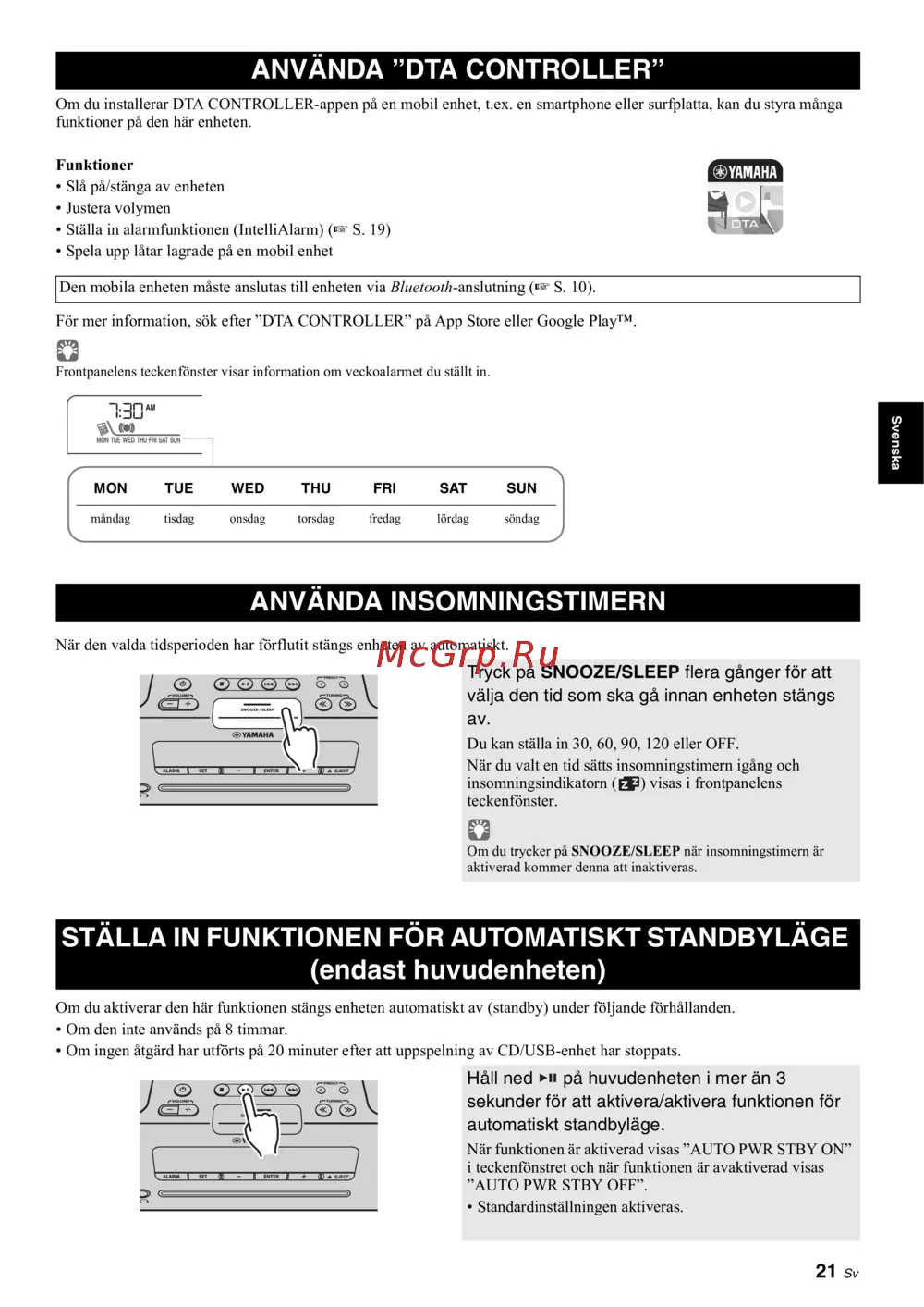 ![Yamaha TSX-B235 White [107/227] Tryck på snooze sleep flera gånger för att välja den tid som ska gå innan enheten stängs av](/views2/1272315/page107/bg6b.png)