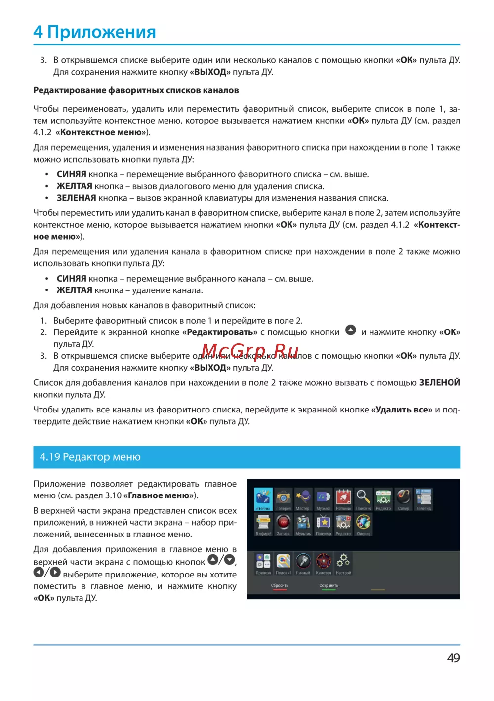 Триколор B522 — редактирование фаворитных списков и главного меню на устройстве [48/57]