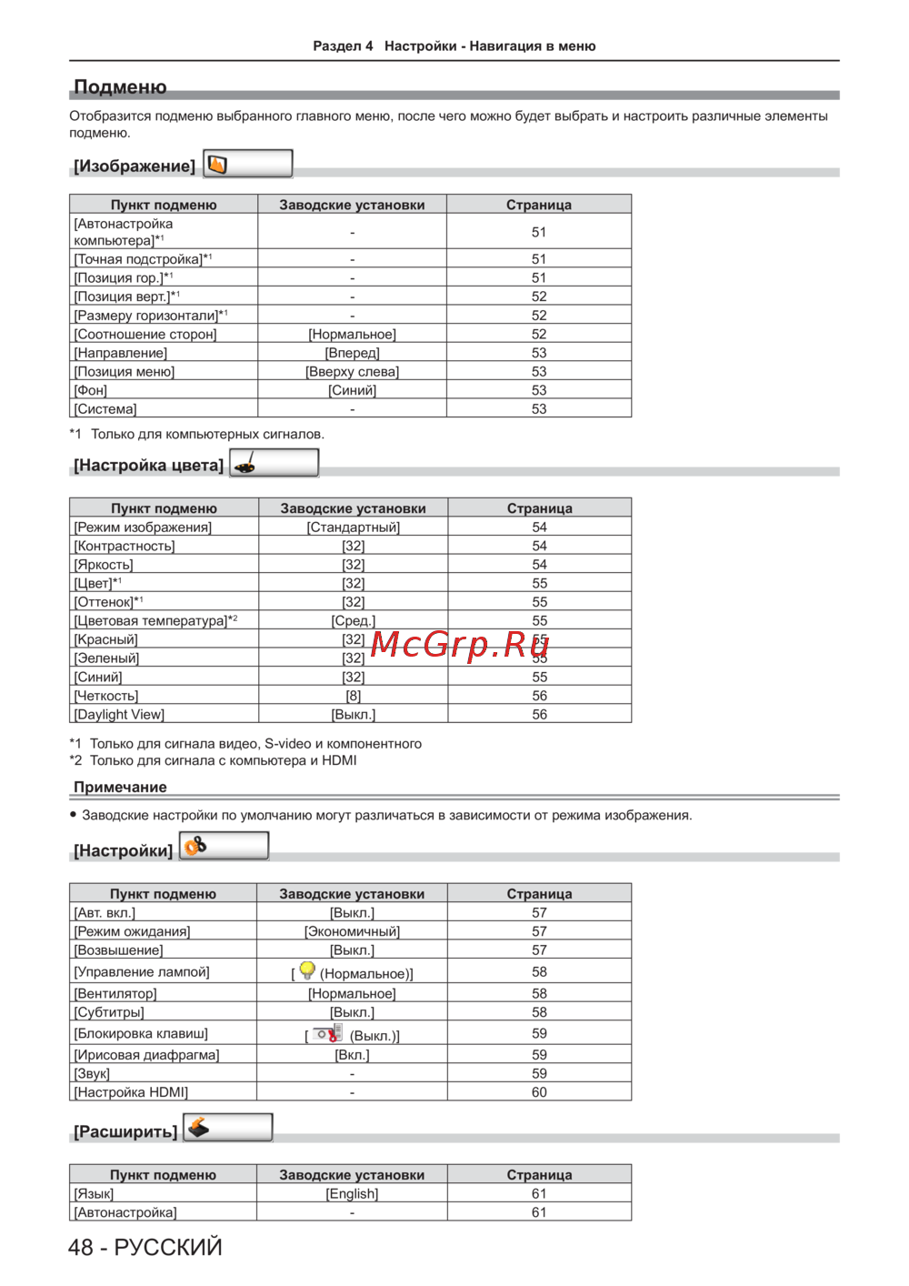 ![Panasonic PT- LW312E [48/114] Русский](/views2/1272804/page48/bg30.png)