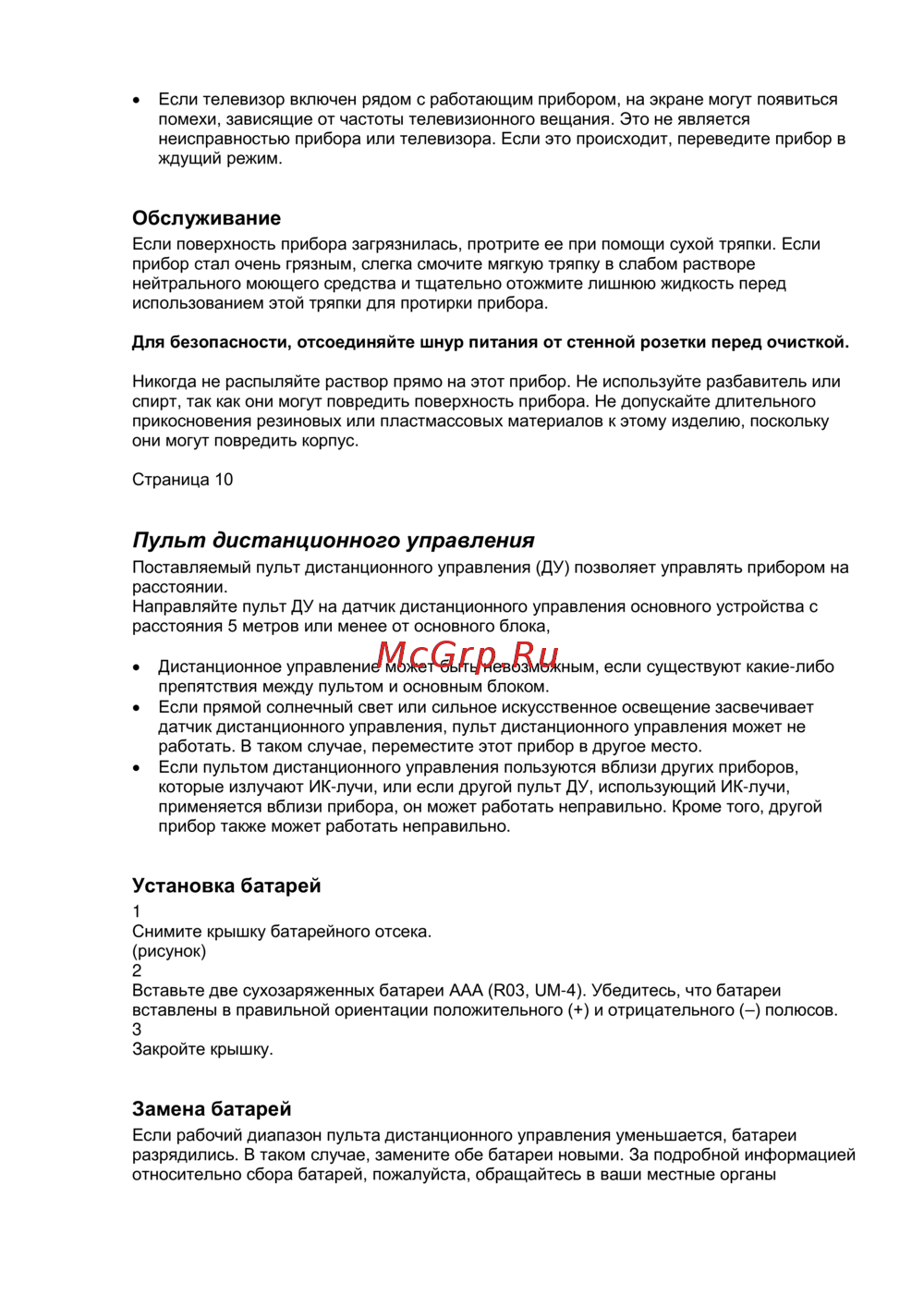 спирт, так как они могут повредить поверхность прибора. Не допускайте длительного