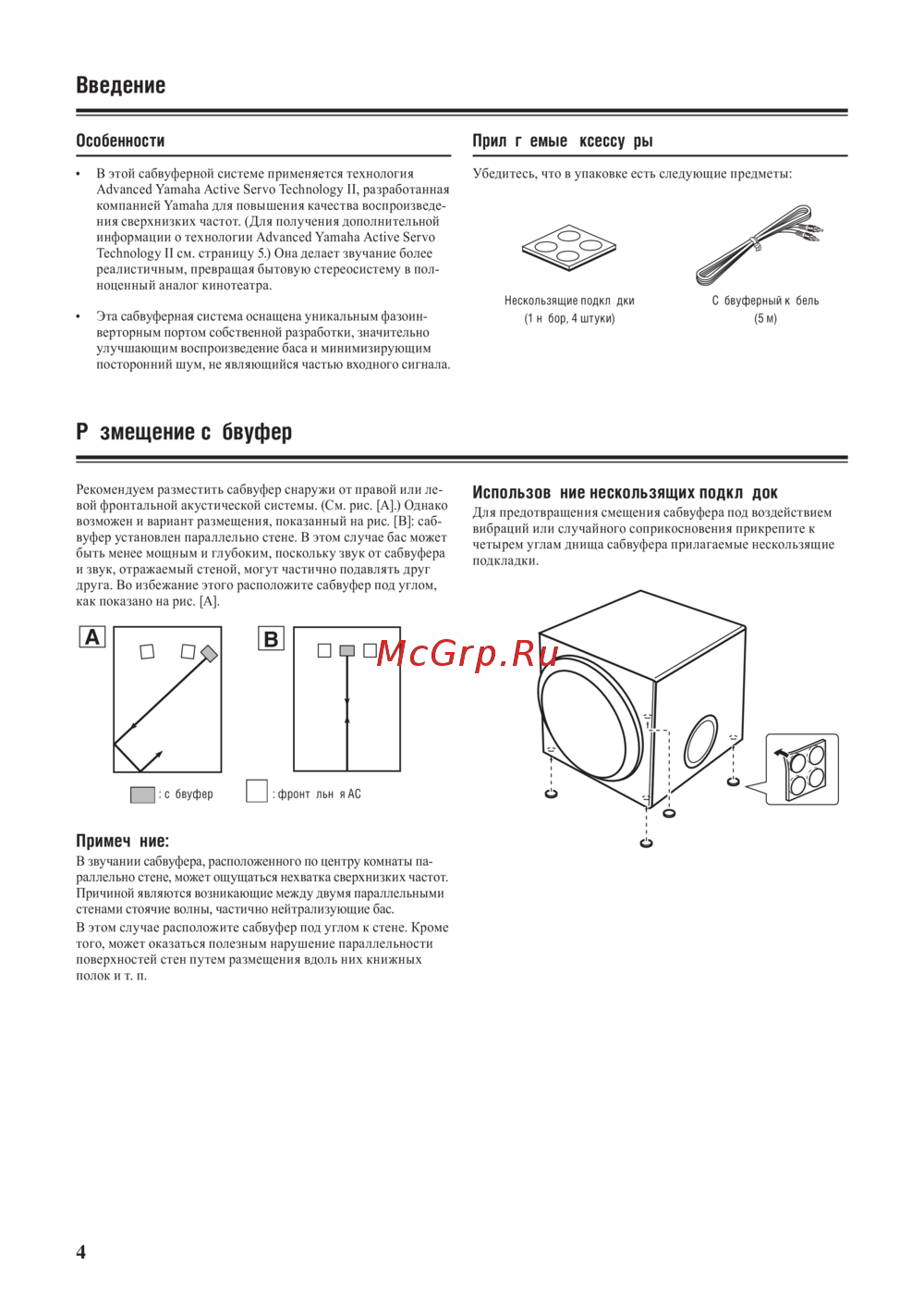 ![Yamaha YST-SW012 Black [4/10] Размещение сабвуфера](/views2/1273564/page4/bg4.png)
