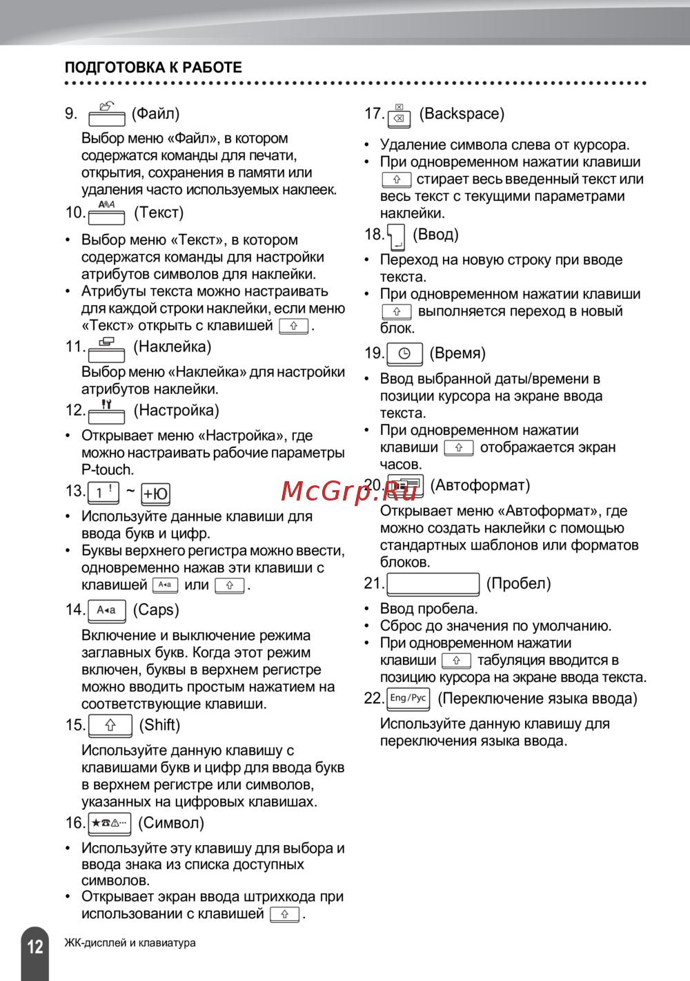 - Перед началом работы с p touch p.6