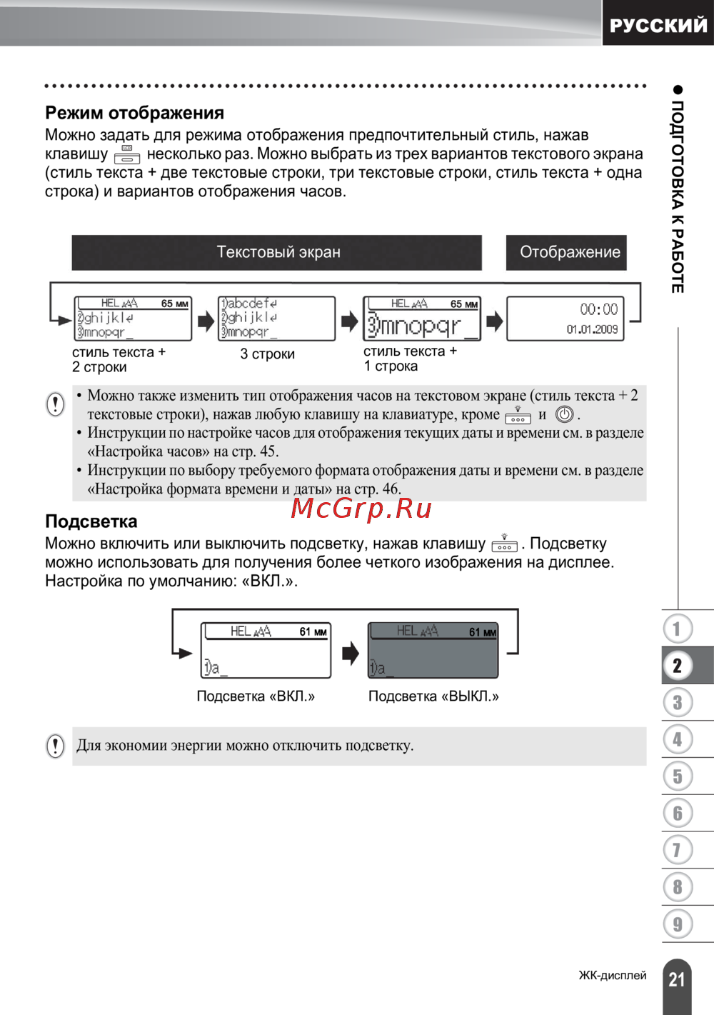 Brother PT-2700 — настройка ЖК-дисплея: режимы отображения и подсветка [23/82]
