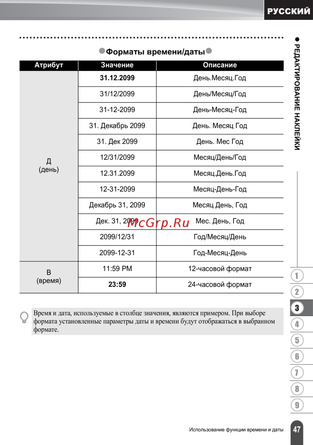 ![Brother PT-2700 [49/82] Форматы времени дат](/views2/1027368/page49/bg31.png)