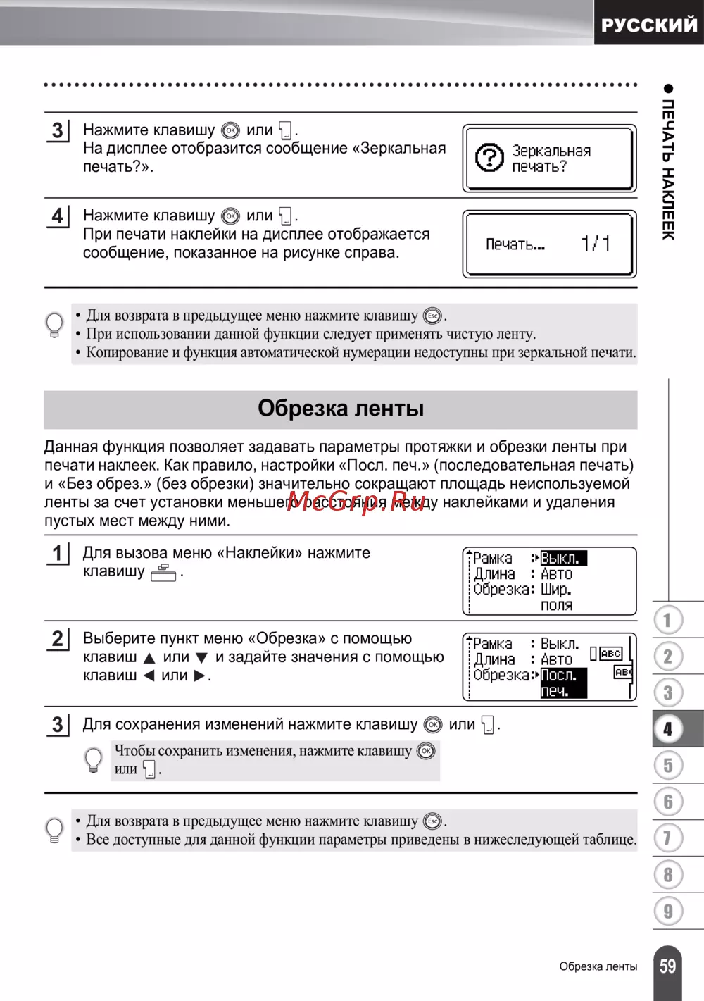 - Наклейка не отрезается автоматически p.73
