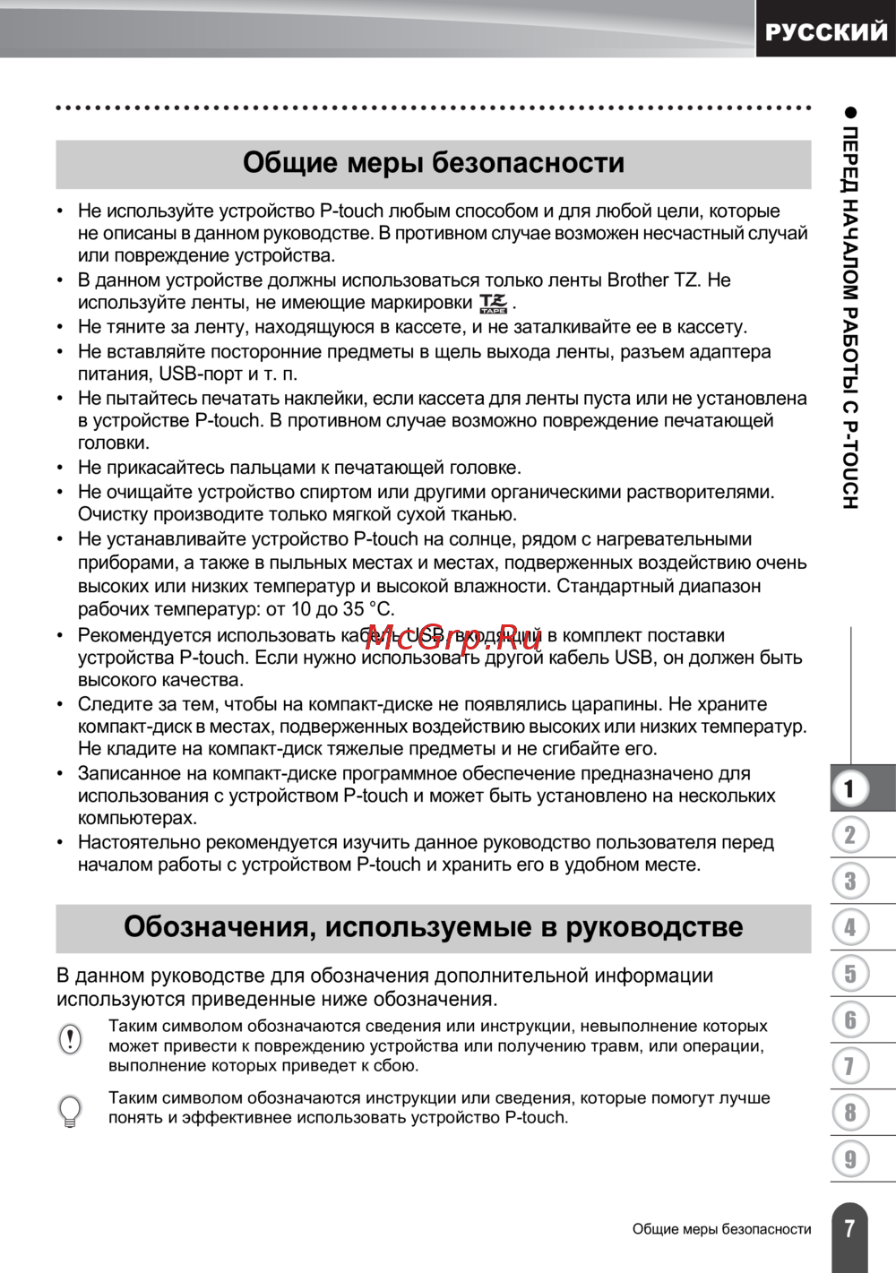 началом работы с устройством P-touch и хранить его в удобном месте.