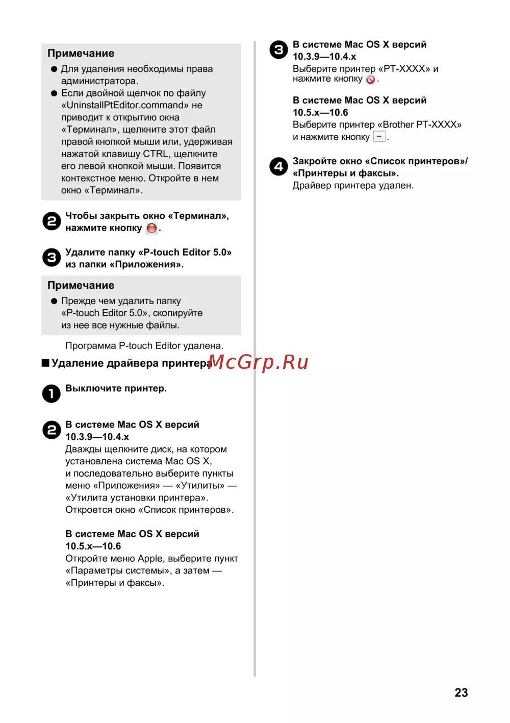 Brother PT-9700PC — инструкция по удалению драйвера принтера на Mac OS X [25/46]