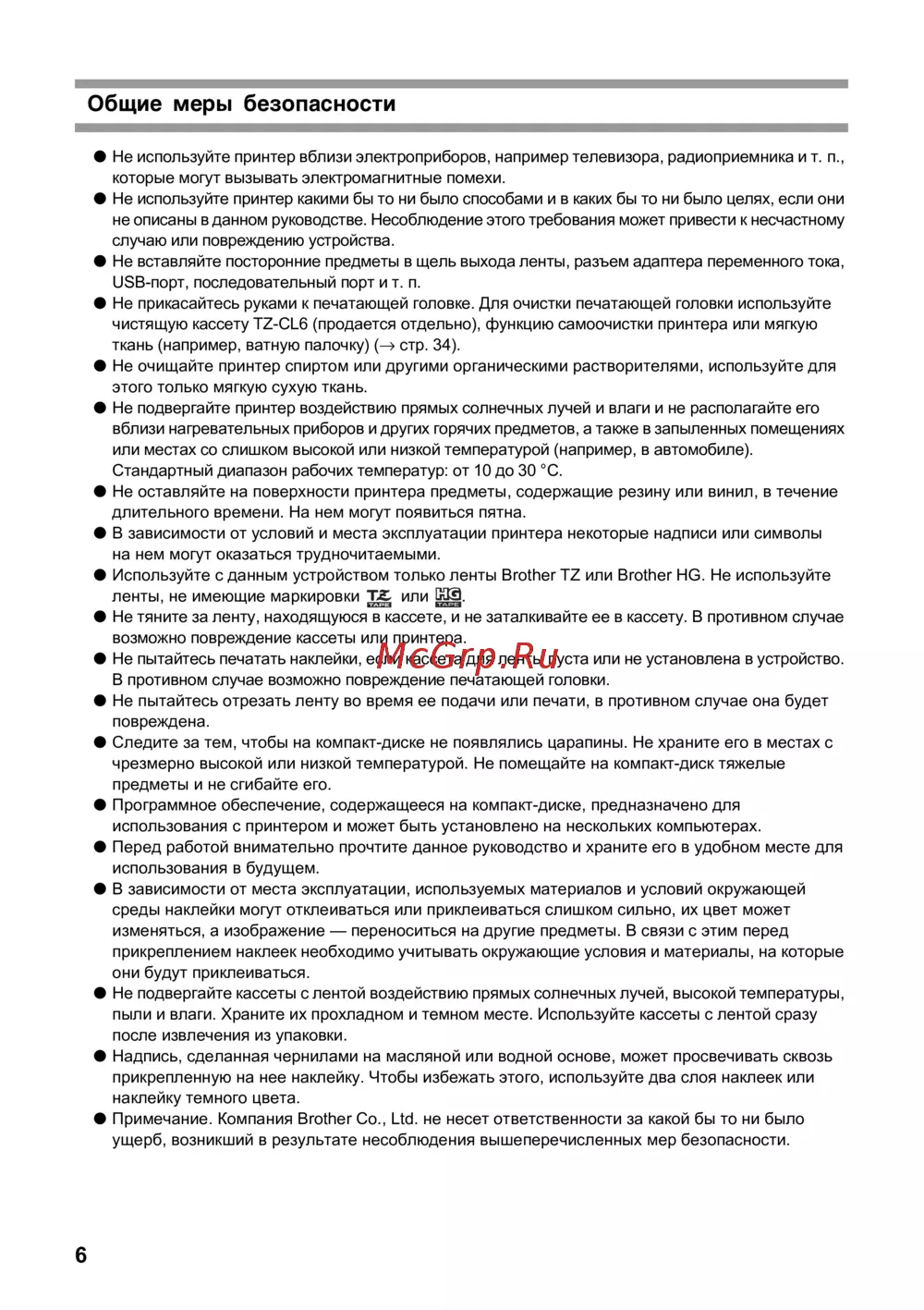 Brother PT-9700PC — рекомендации по безопасному использованию принтера и наклеек [8/46]