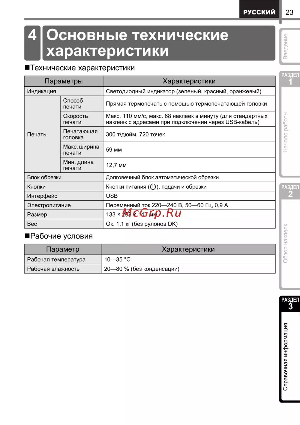 Brother QL-570 — технические характеристики и параметры печатающих устройств [27/28]