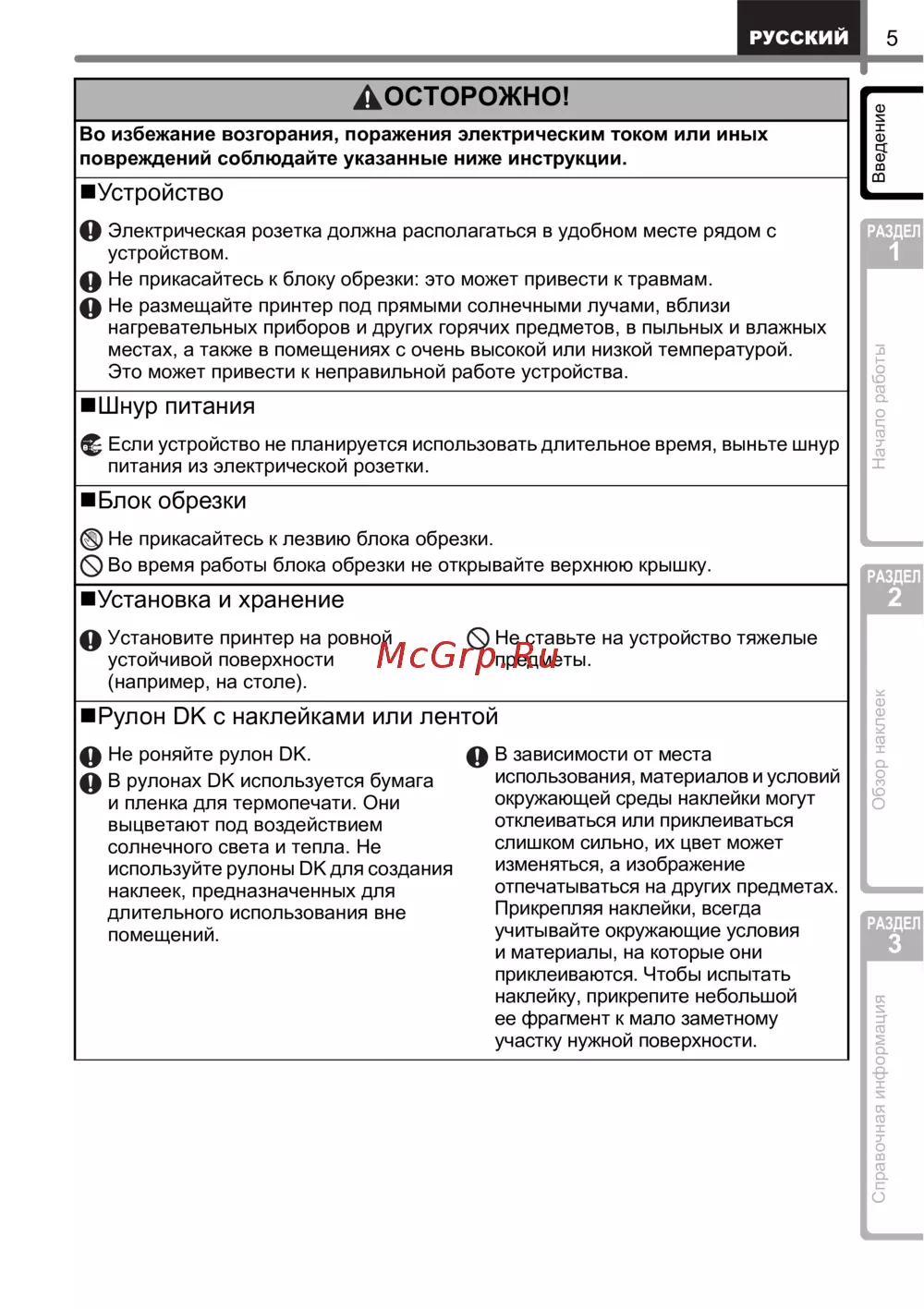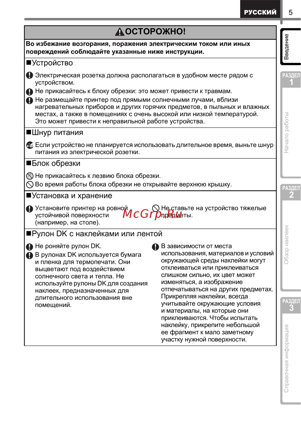 - Общие меры безопасности p.10