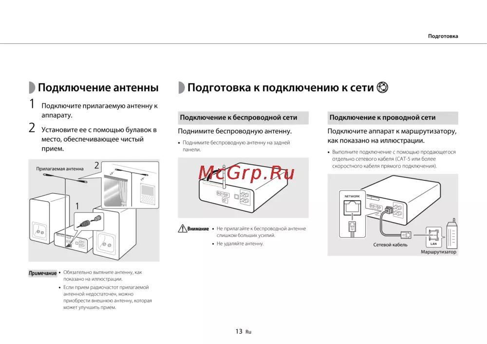 - Подготовка к подключению к сети p.13