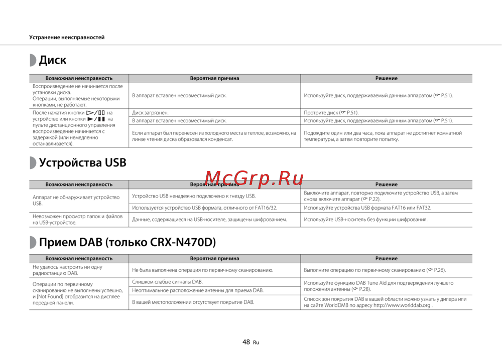 - Устранение неисправностей p.48