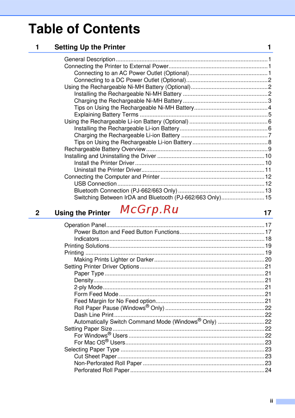 - User s guide pj 622 pj 623 pj 662 pj 663 mobile printer p.1