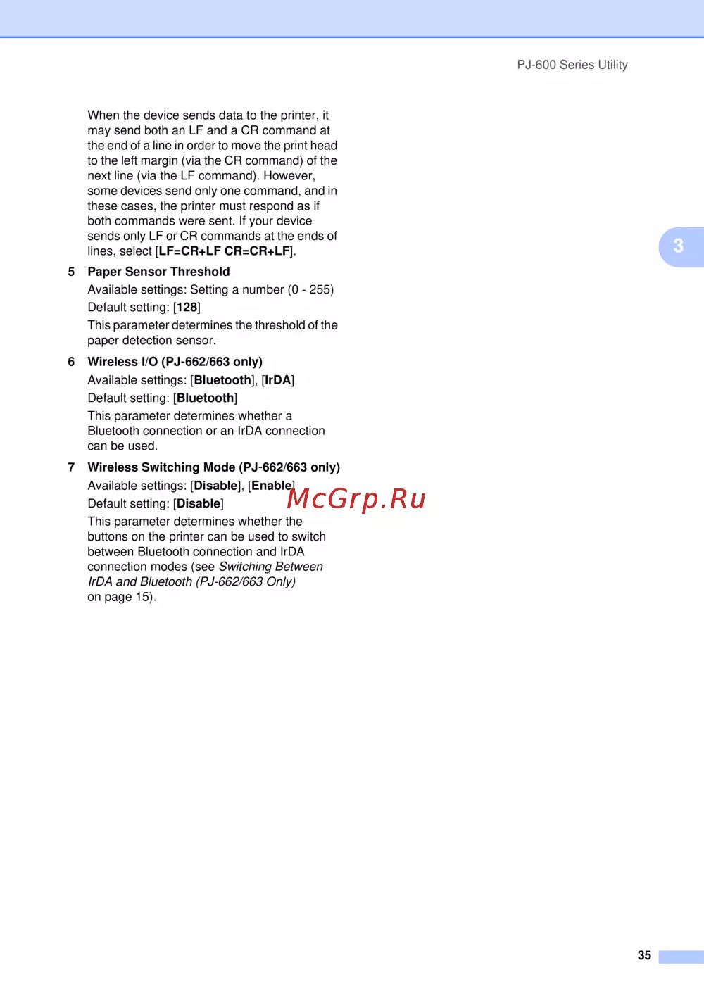 Brother PJ-622 — настройки принтера: управление командами и беспроводными соединениями [39/61]