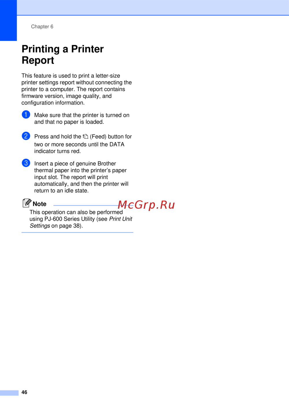 Brother PJ-622 — как напечатать отчет о настройках принтера без компьютера [50/61]
