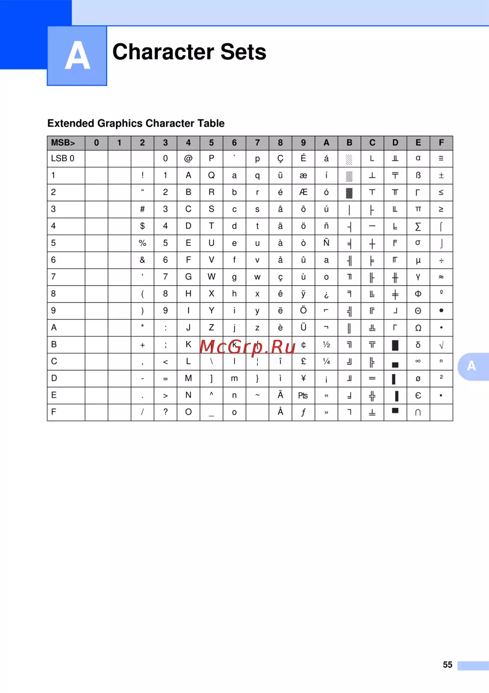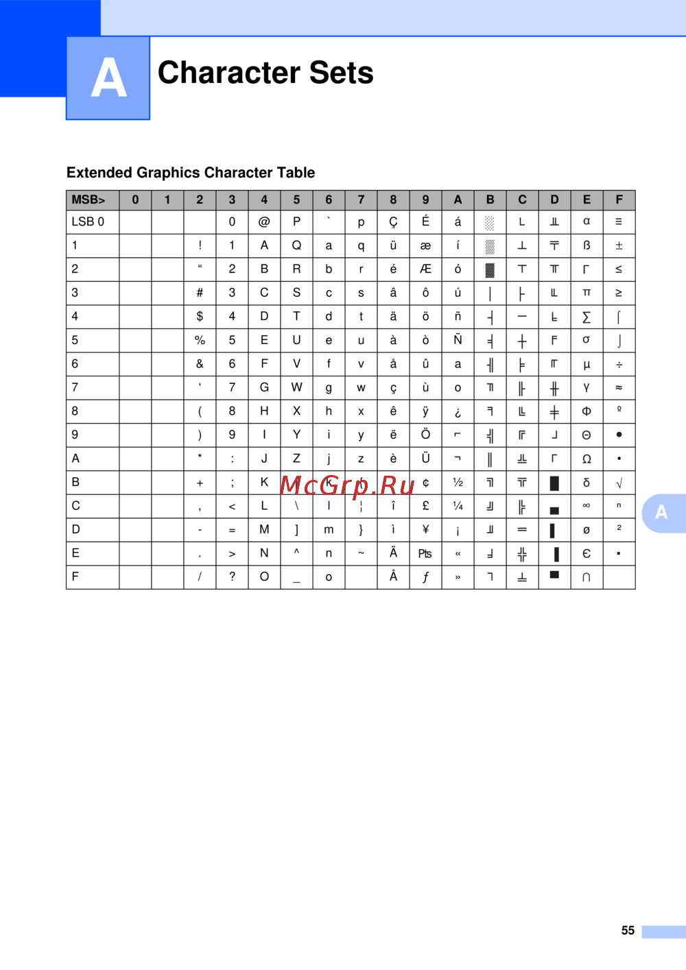 Brother PJ-622 [59/61] Extended graphics character table