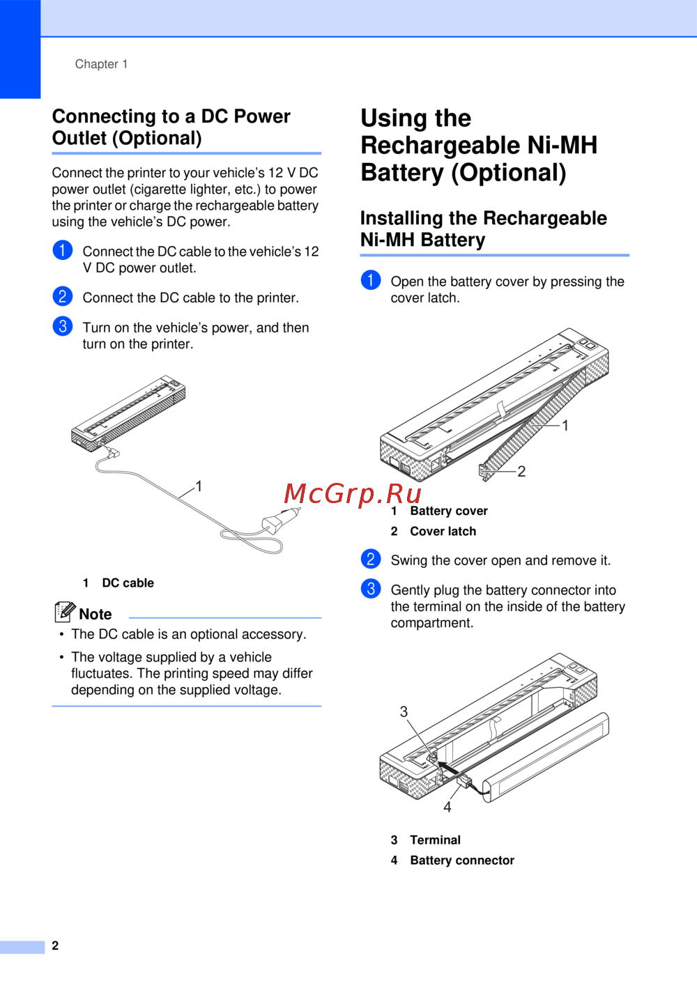 Brother PJ-622 [6/61] Using the rechargeable ni mh battery optional