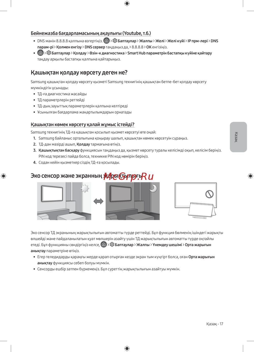Теледидардағы ақауларды шешу үшін DNS параметрлерін өзгерту, қашықтан қолдау көрсету қызметі және экологиялық сенсордың жұмысын түсініңіз.