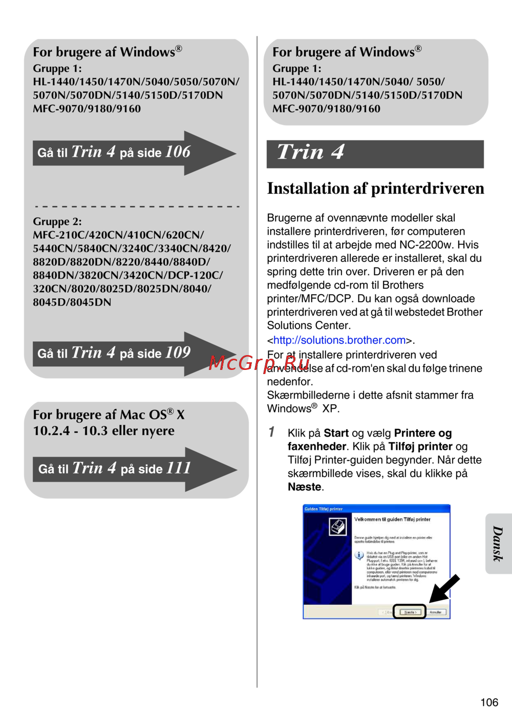 Brother NC-2200w — installation af printerdriver til kompatible printermodeller [107/159]