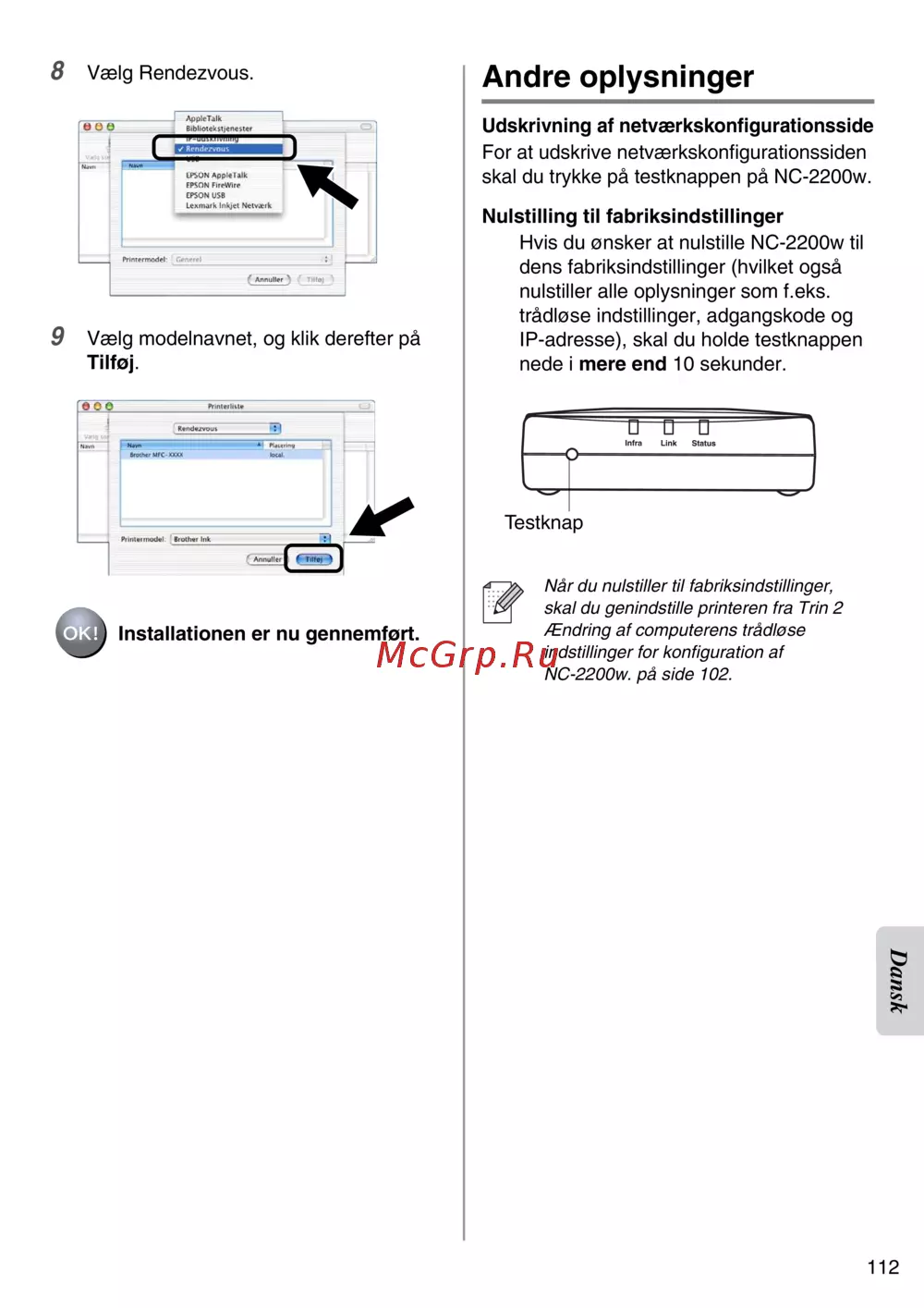 Brother NC-2200w — sådan konfigureres og nulstilles en trådløs printer [113/159]