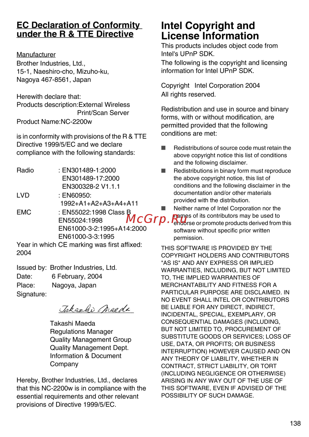 ![Brother NC-2200w [139/159] Ec declaration of conformity under the r tte directive](/views2/1027419/page139/bg8b.png)