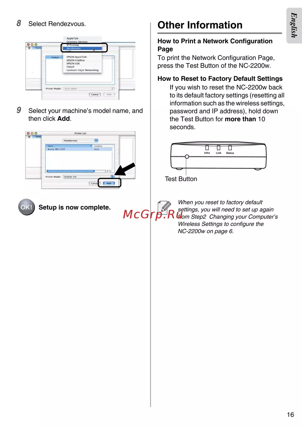 Brother NC-2200w — настройка и сброс сетевого устройства: пошаговое руководство [17/159]