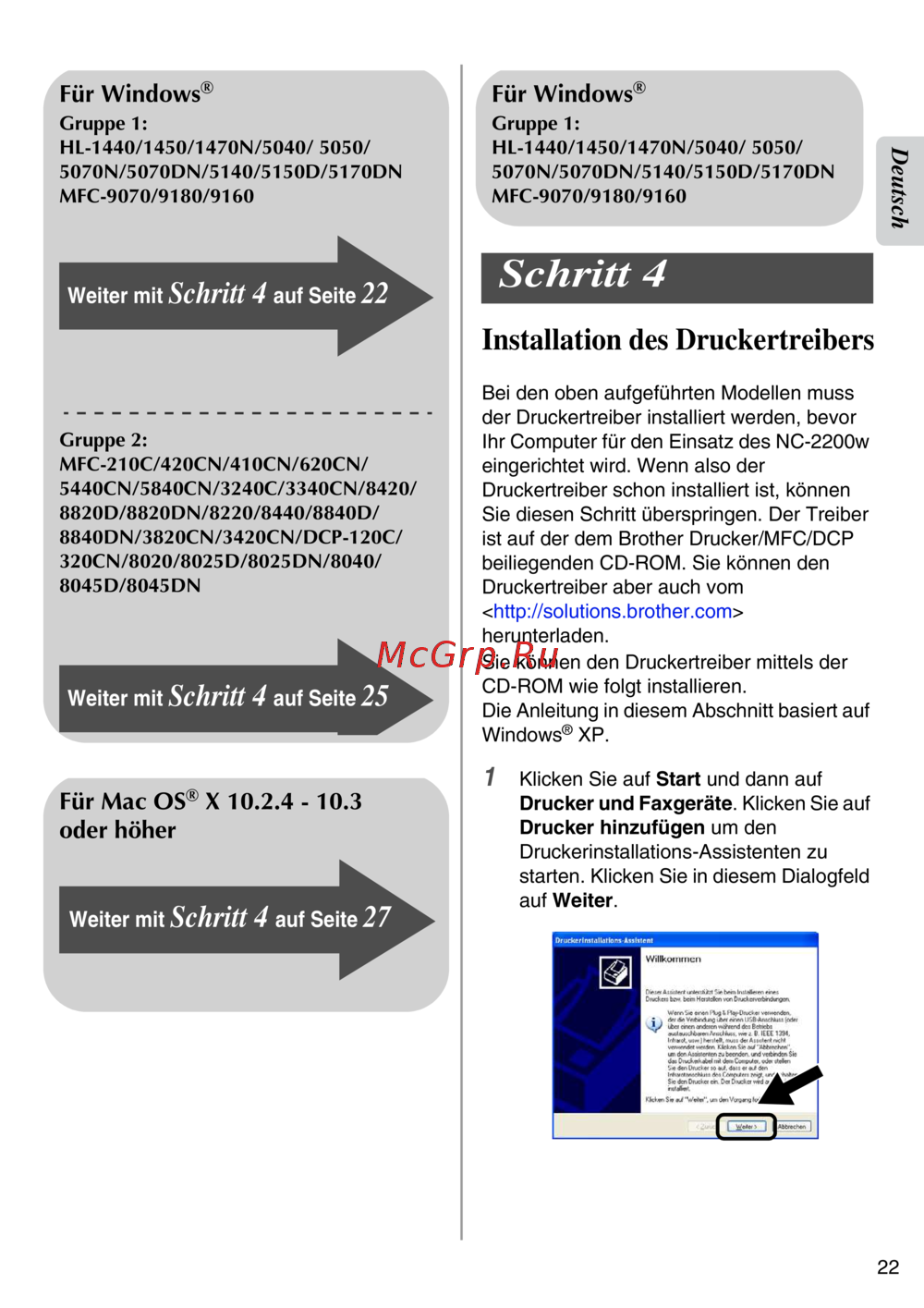 Brother NC-2200w — anleitung zur Installation des Druckertreibers für verschiedene Modelle [23/159]