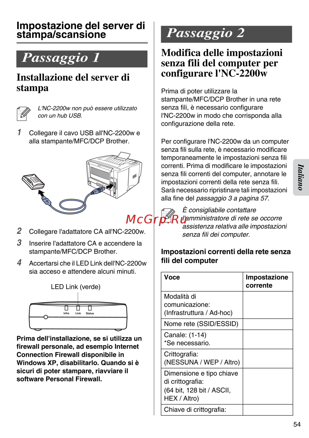 Brother NC-2200w — guida all'installazione del server di stampa e scansione [55/159]